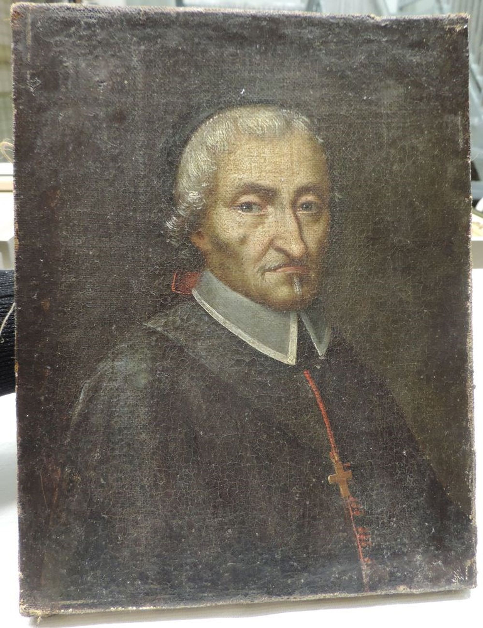 ; "Messire henry arnaud//Evesque d'angers décédé//le 8 Juin 1692 agé [sic] de//95 ans//peint par besnard//a Angers"
