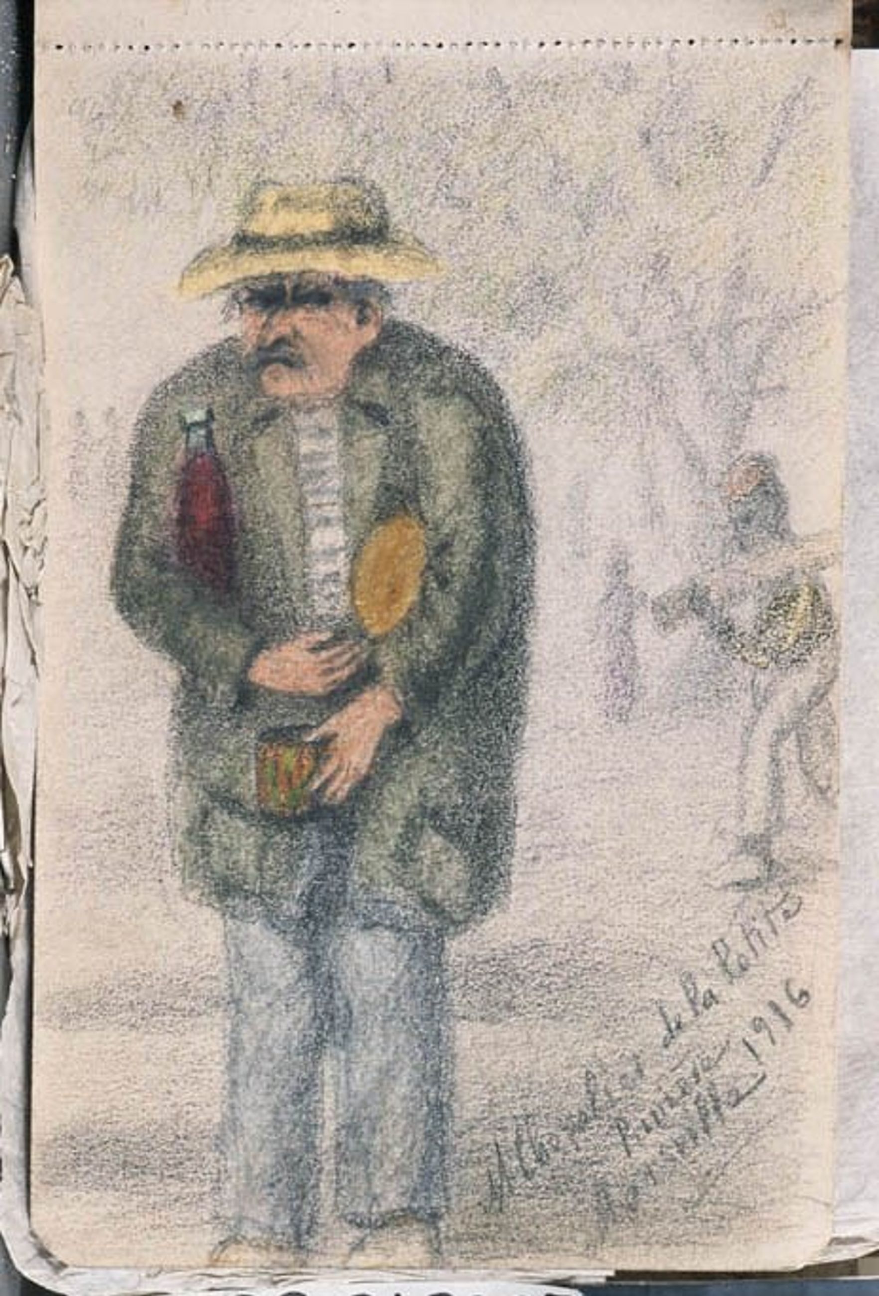 Homme au pain et à la bouteille de vin - Album de dessins