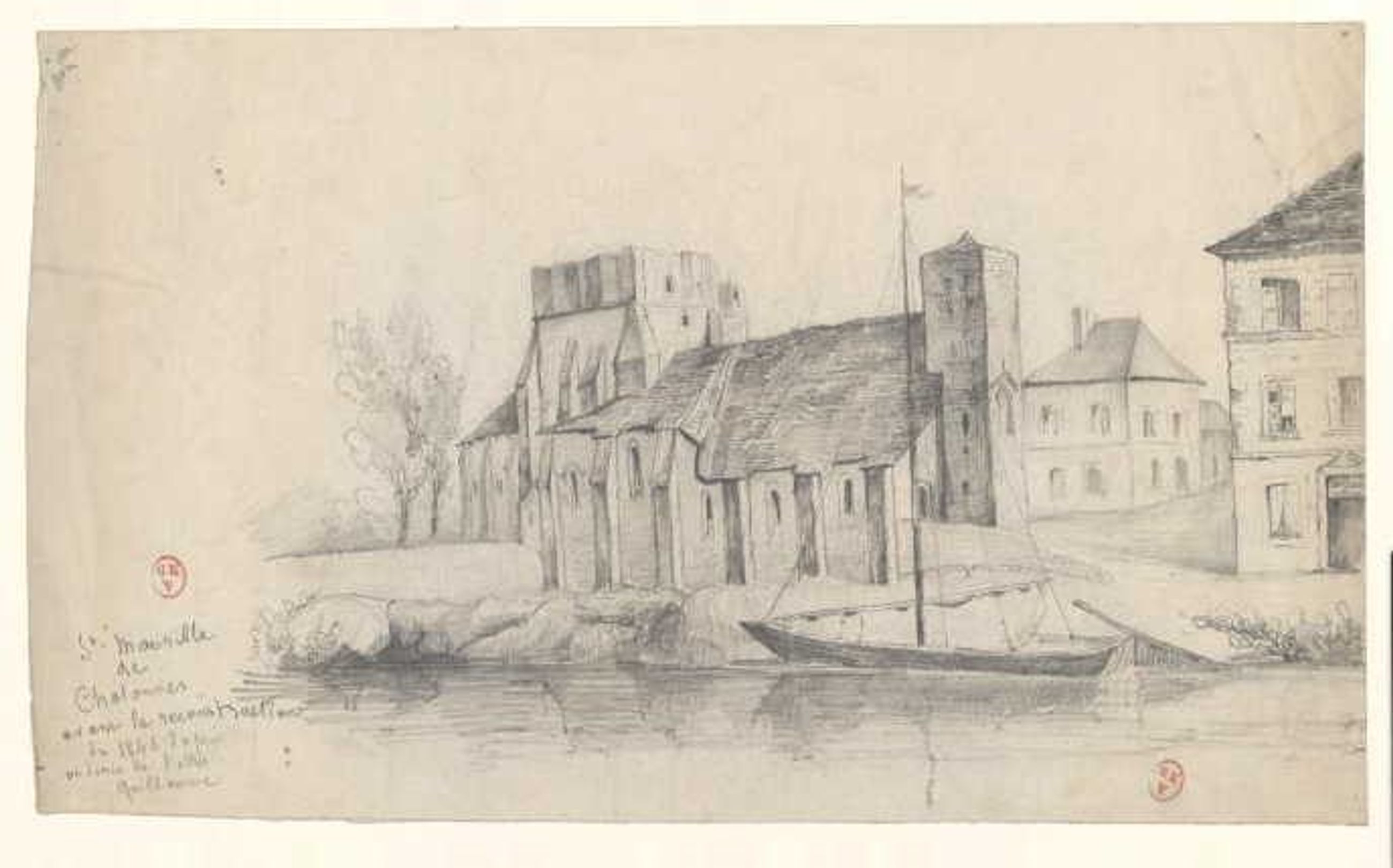 ; "St Maurille // de // Chalonnes // avant la reconstruction // de 1846 d'après // un dessin de l'abbé // Guillaume"