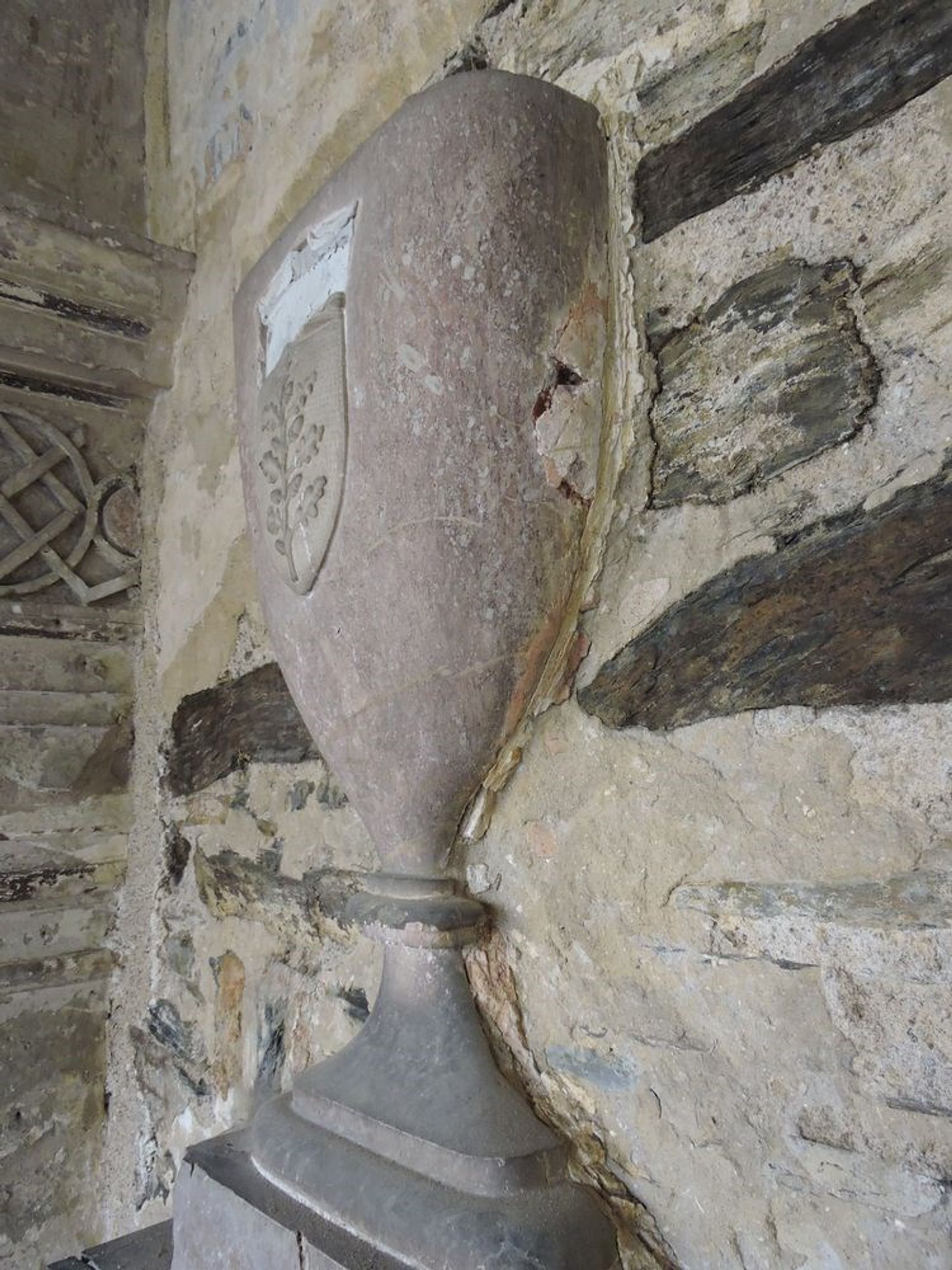 Monument funéraire. Sur un socle de marbre noir s'élève une plaque de marbre noir rectangulaire avec inscription en lettres dorées. Au dessus sur un socle est dressé une urne de marbre rouge sur laquelle se détache les armes en marbres blanc des Trouillet de Bléré: d'or à la branche de chêne de sinople chargée de six glands de même.