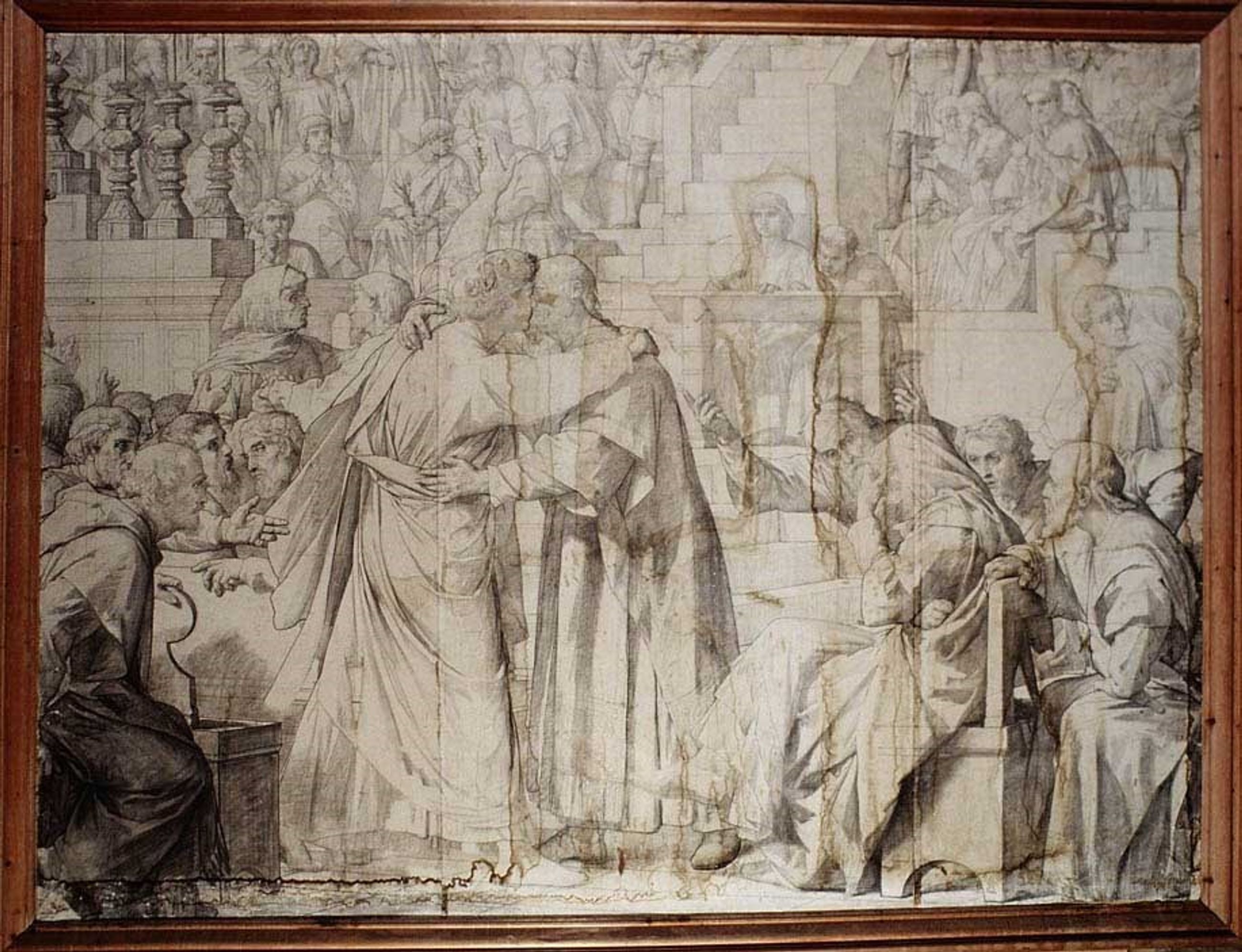 Saint Augustin, au concile de Carthage, réconciliant les catholiques et les donatistes - Oeuvre préparatoire (dessin) - Etude pour les fresques de Saint-Ambroise - Carton préparatoire
