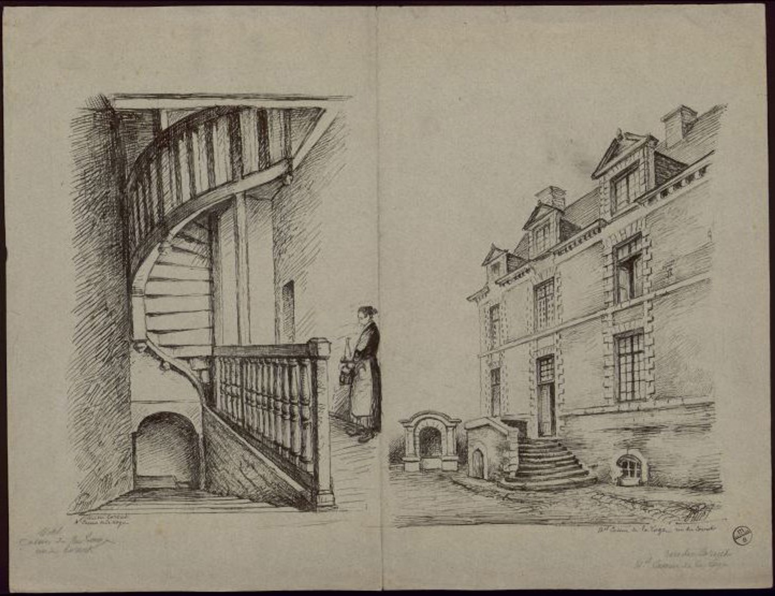 Escalier de l'hôtel Cassin-de-La-Loge, rue du Cornet. - Façade de l'hôtel - Dessin