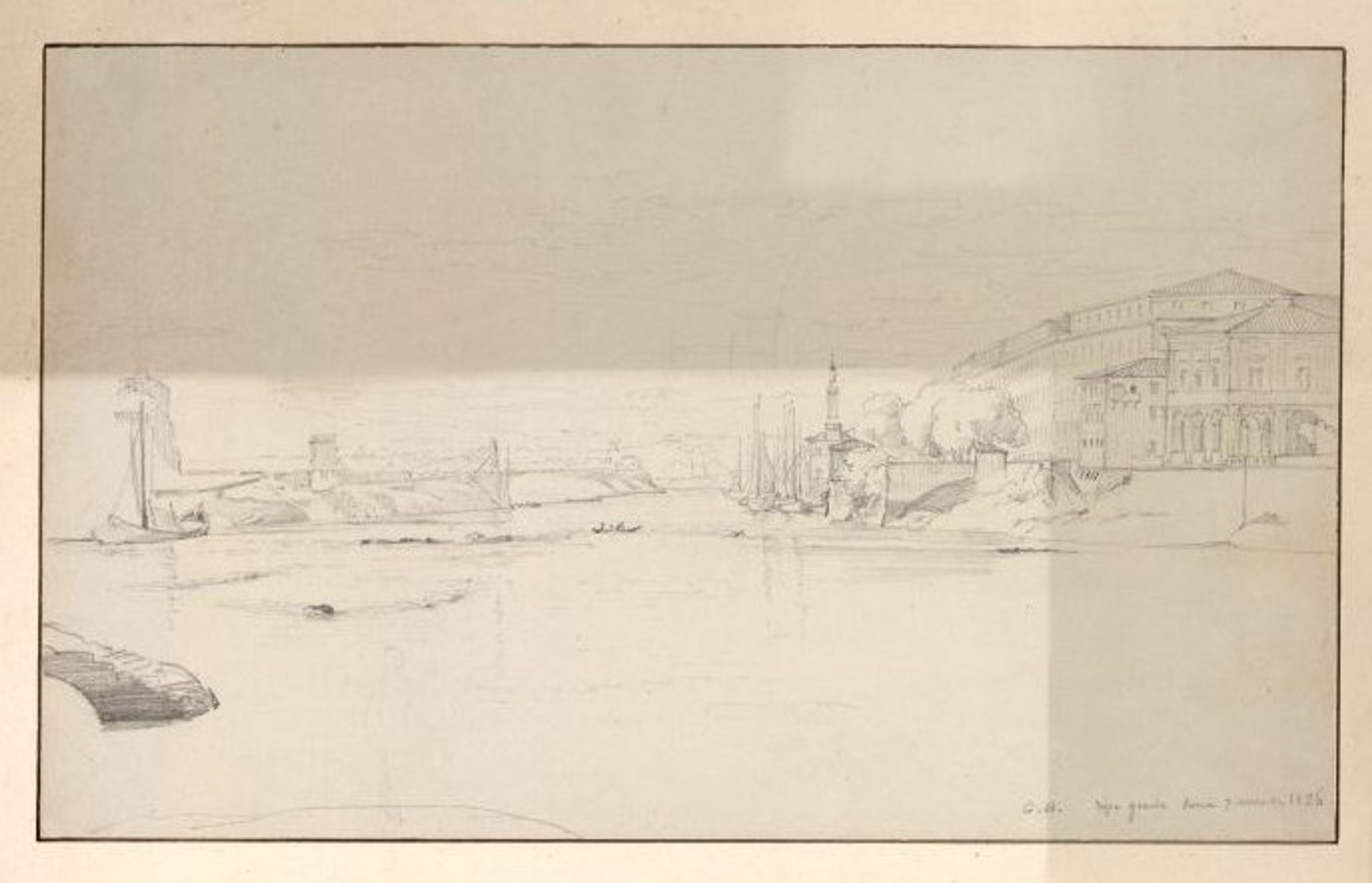 Rome, vue de Ripa Grande con il Giardino Pamphili - Dessin