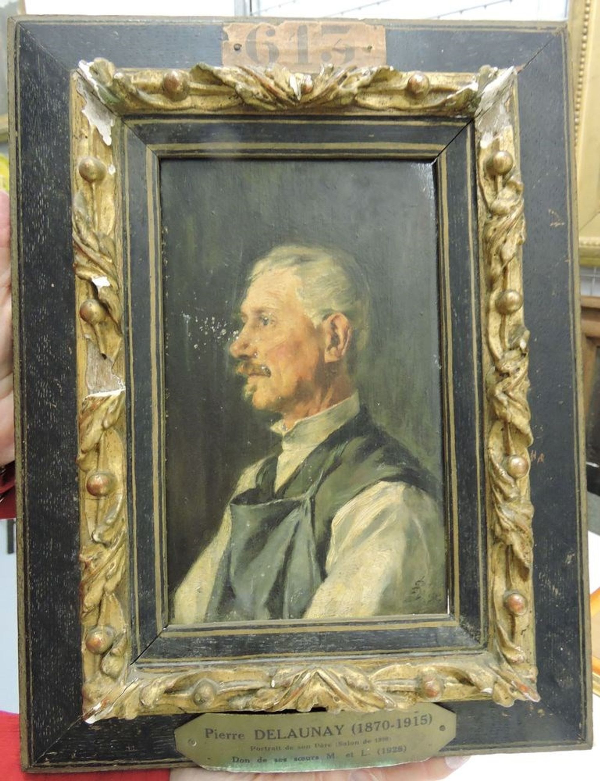 ; "Pierre Delaunay//1870-1915//Portrait de son Père (salon de 1898)//Don de ses soeurs D.et L. (1928)//[effacé]"