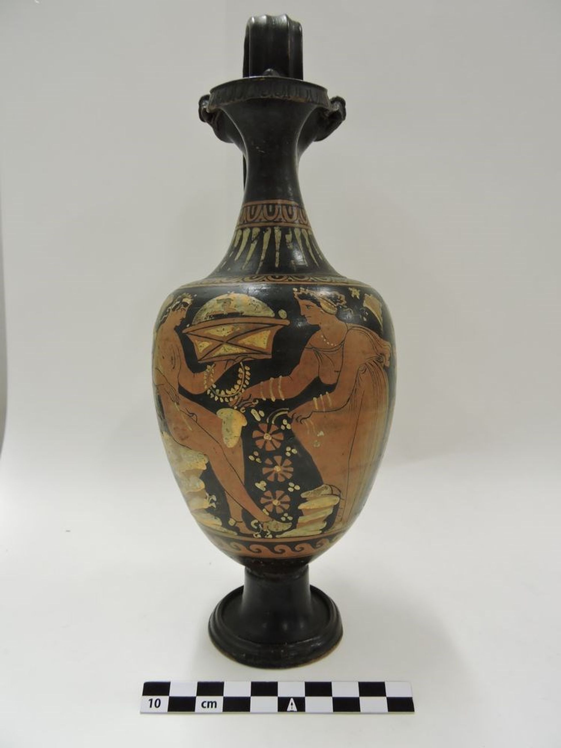 Oenochoé à la scène d'offrande entre un satyre et une femme